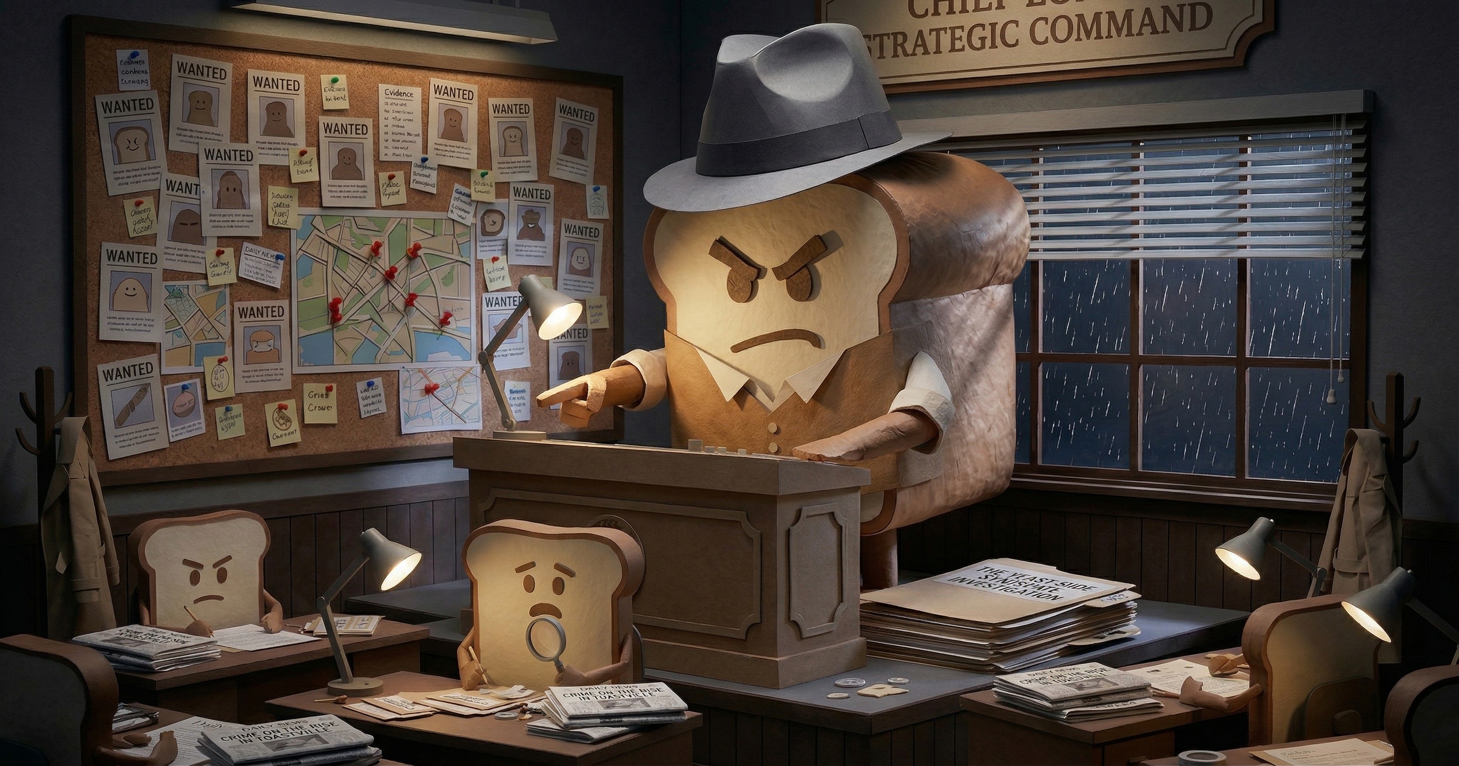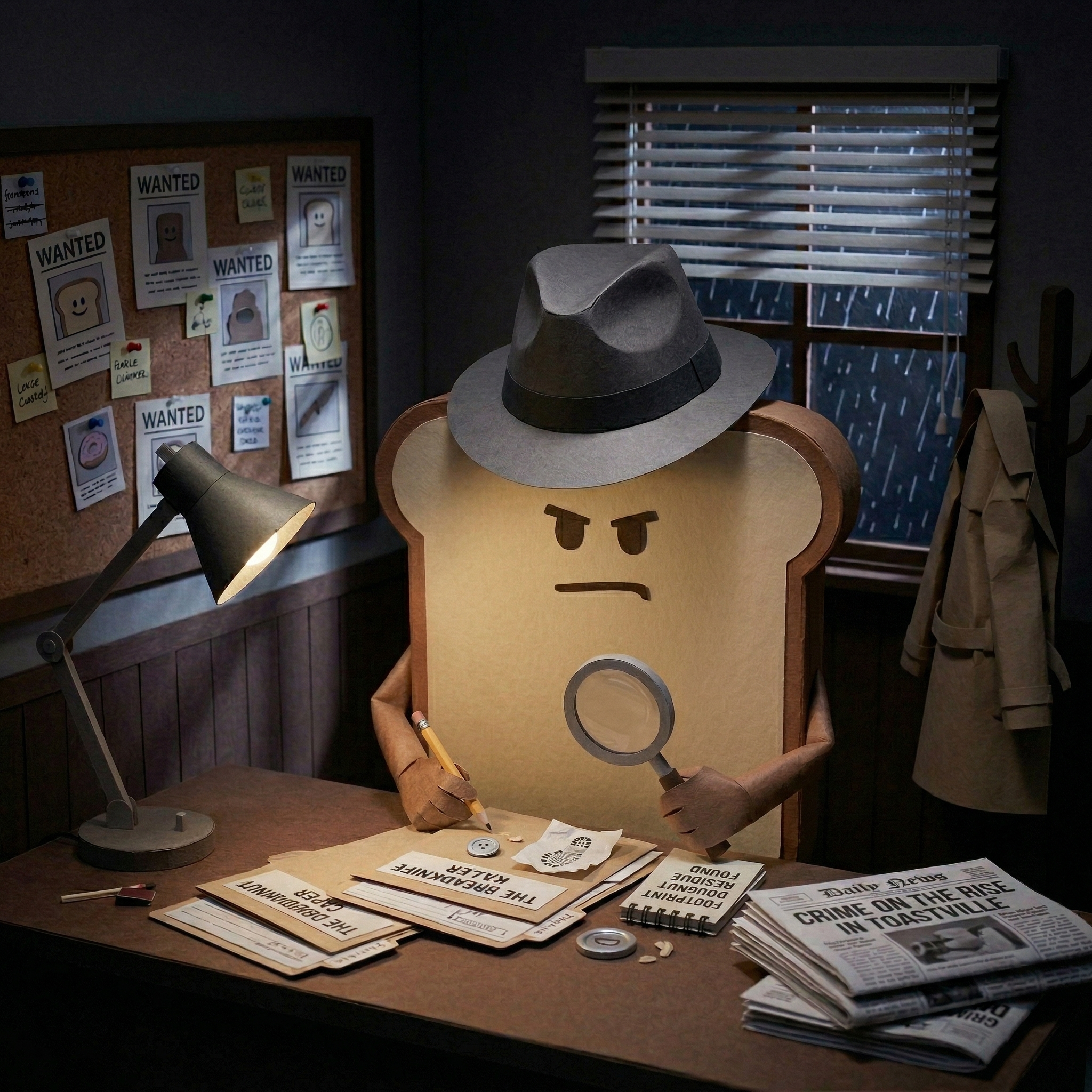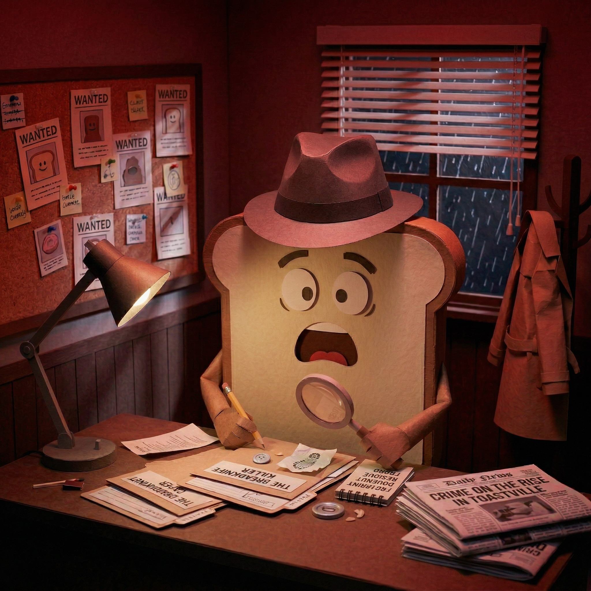 Detective Toast is hot on the trail of the elusive Burnt Toast — slippery, smoky, and nowhere near the real answer.